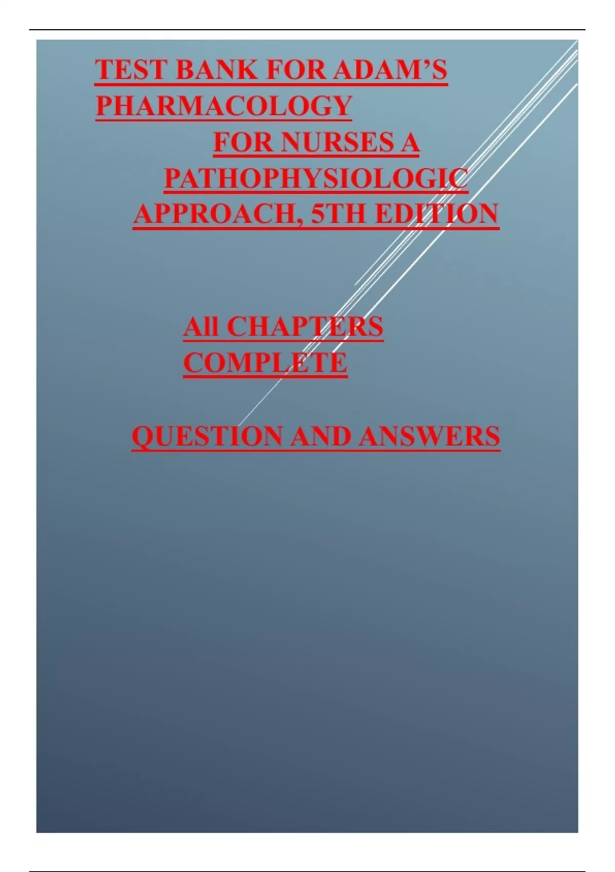 TEST BANK FOR ADAM’S PHARMACOLOGY FOR NURSES A PATHOPHYSIOLOGIC APPROACH, 5TH EDITION.pdf