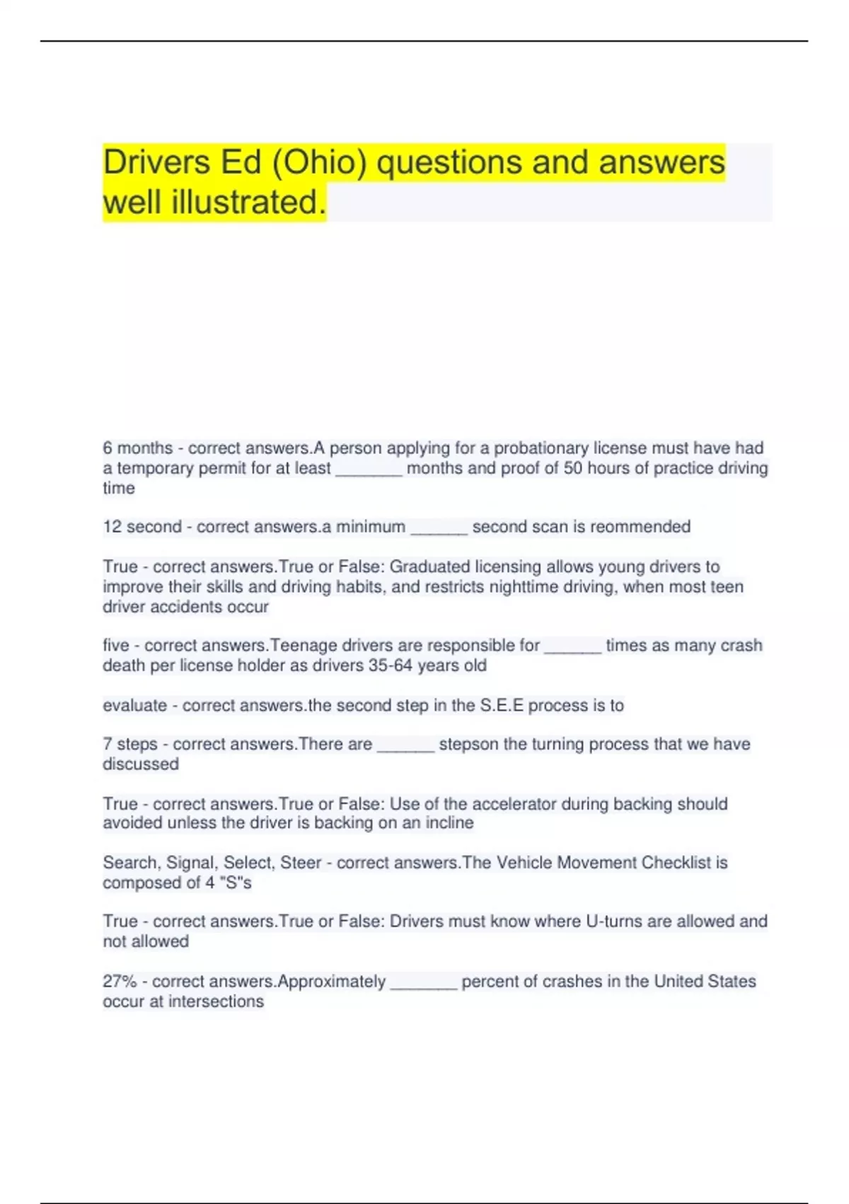 Drivers Ed (Ohio) questions and answers well illustrated.