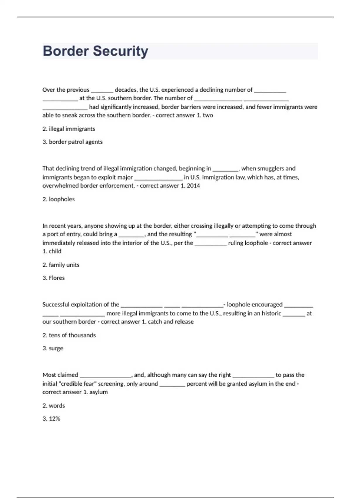 Border Security question n answers graded A+ 2023