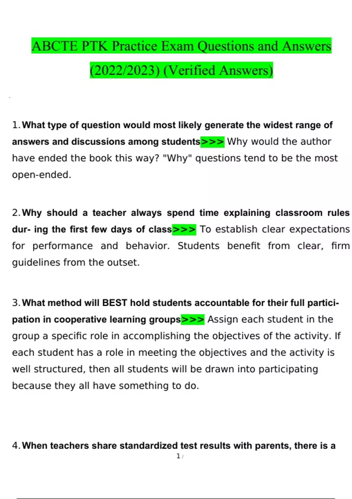 ABCTE PTK Exam Practice Questions and Answers 2022/2023