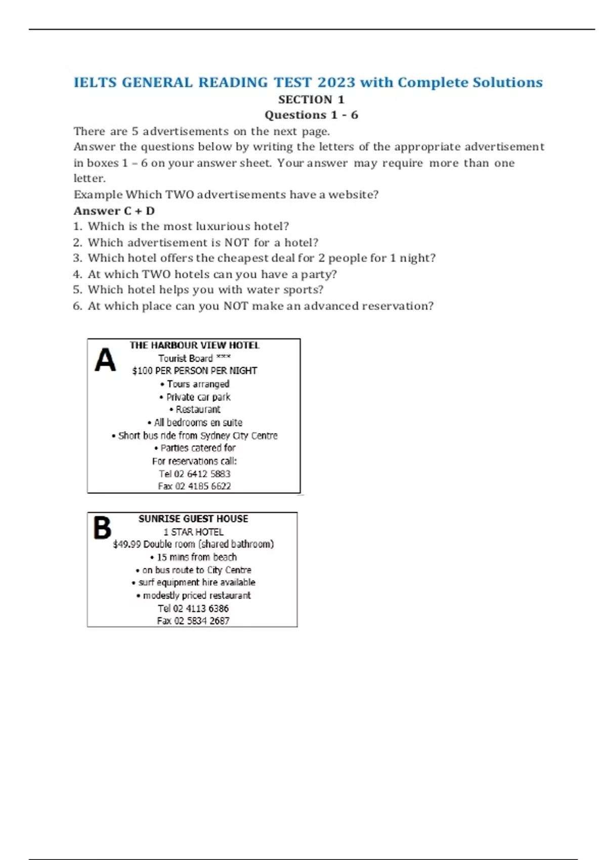 IELTS GENERAL READING TEST 2023 with Complete Solutions