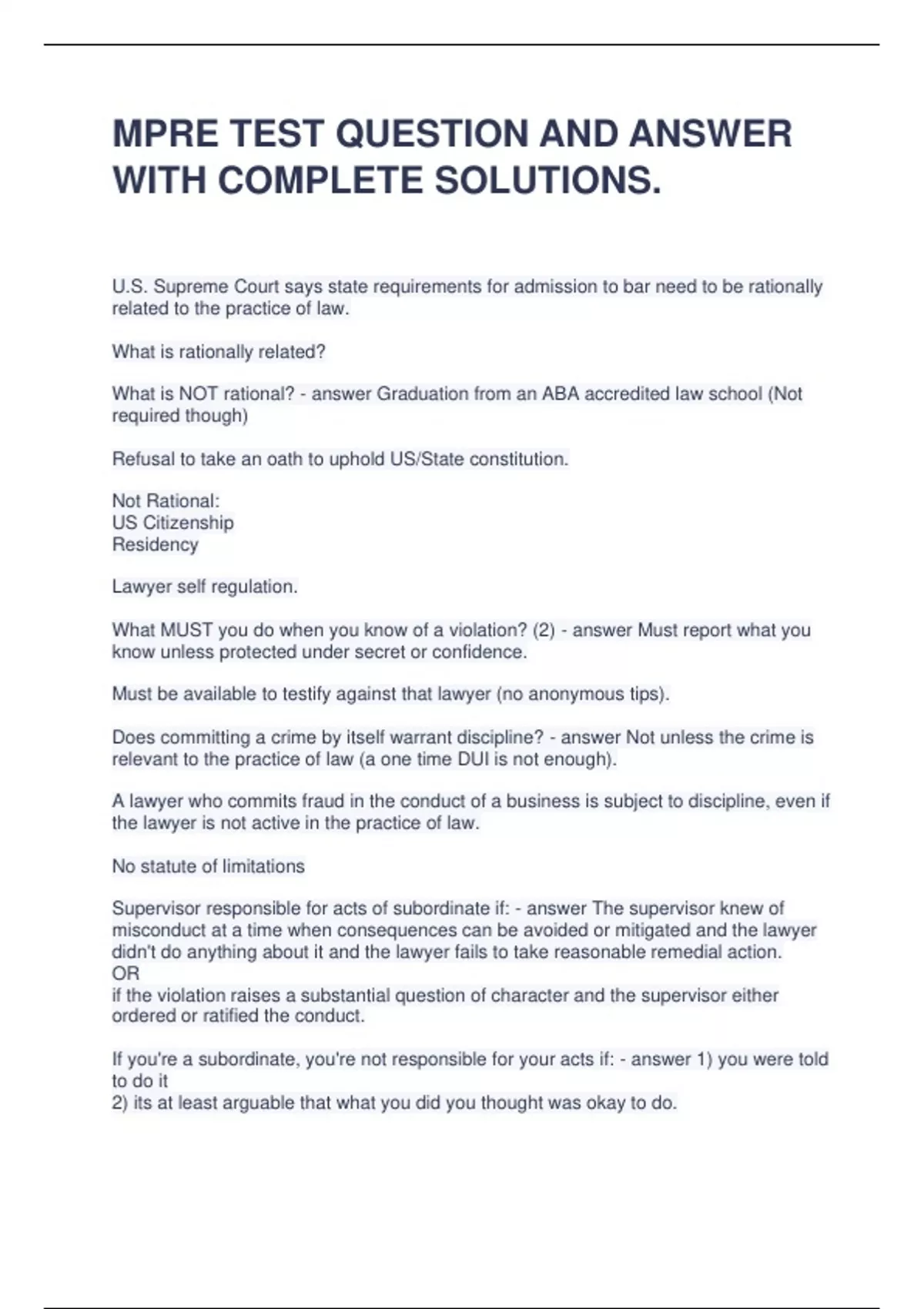 mpre test question and answer with complete soluti