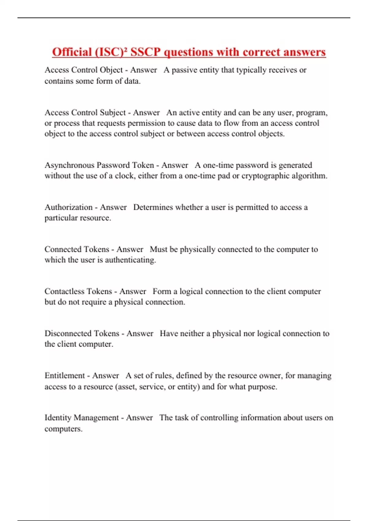 Official (ISC)² SSCP questions with correct answers