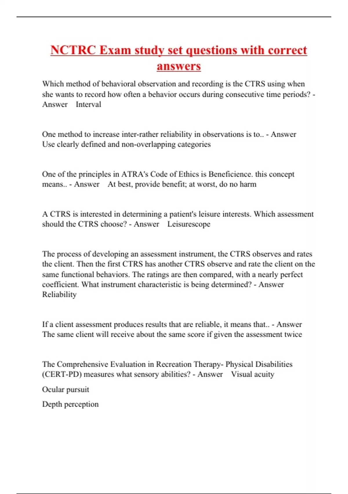 NCTRC Exam study set questions with correct answers