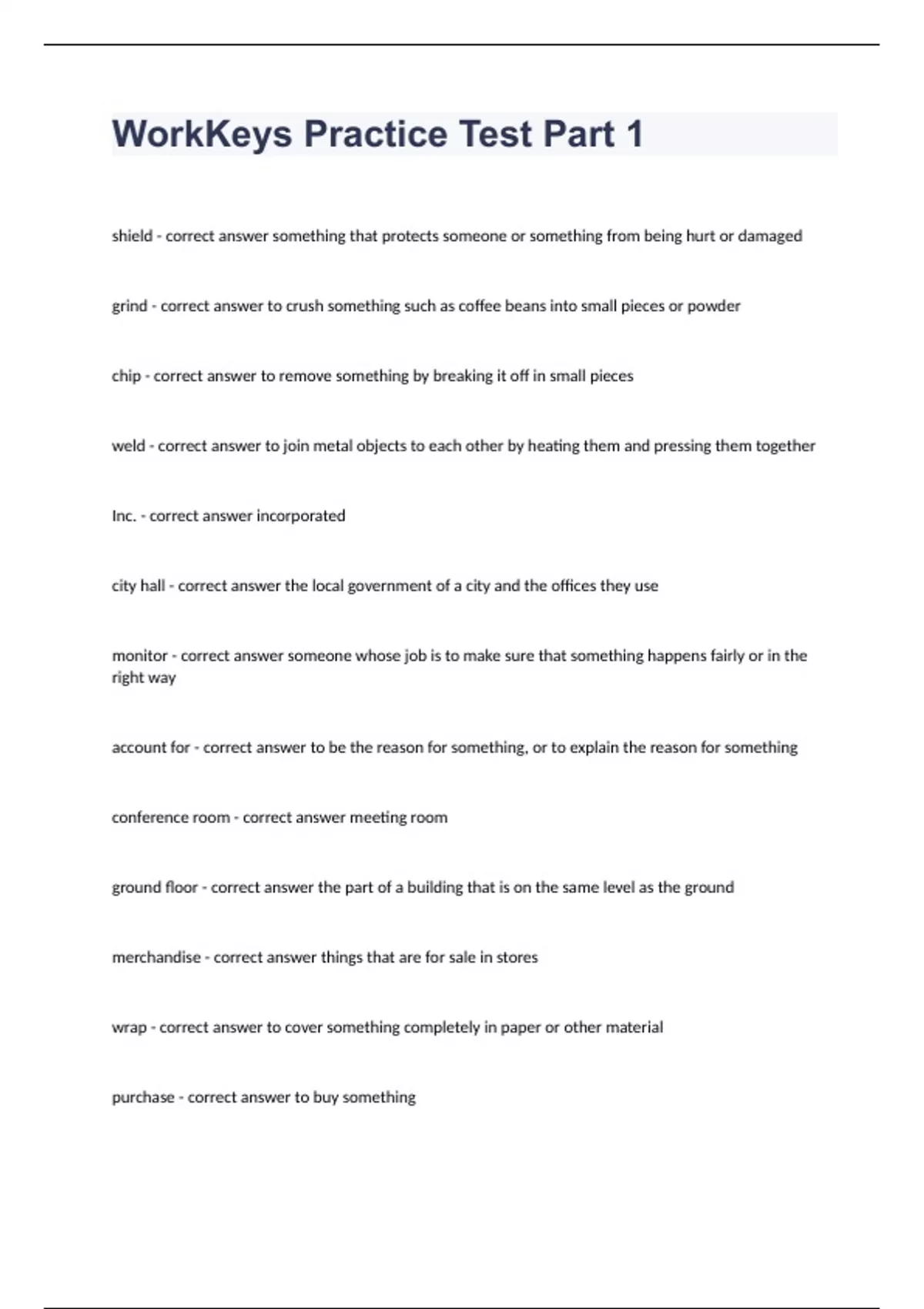 WorkKeys Practice Test Part 1 question n answers 2023