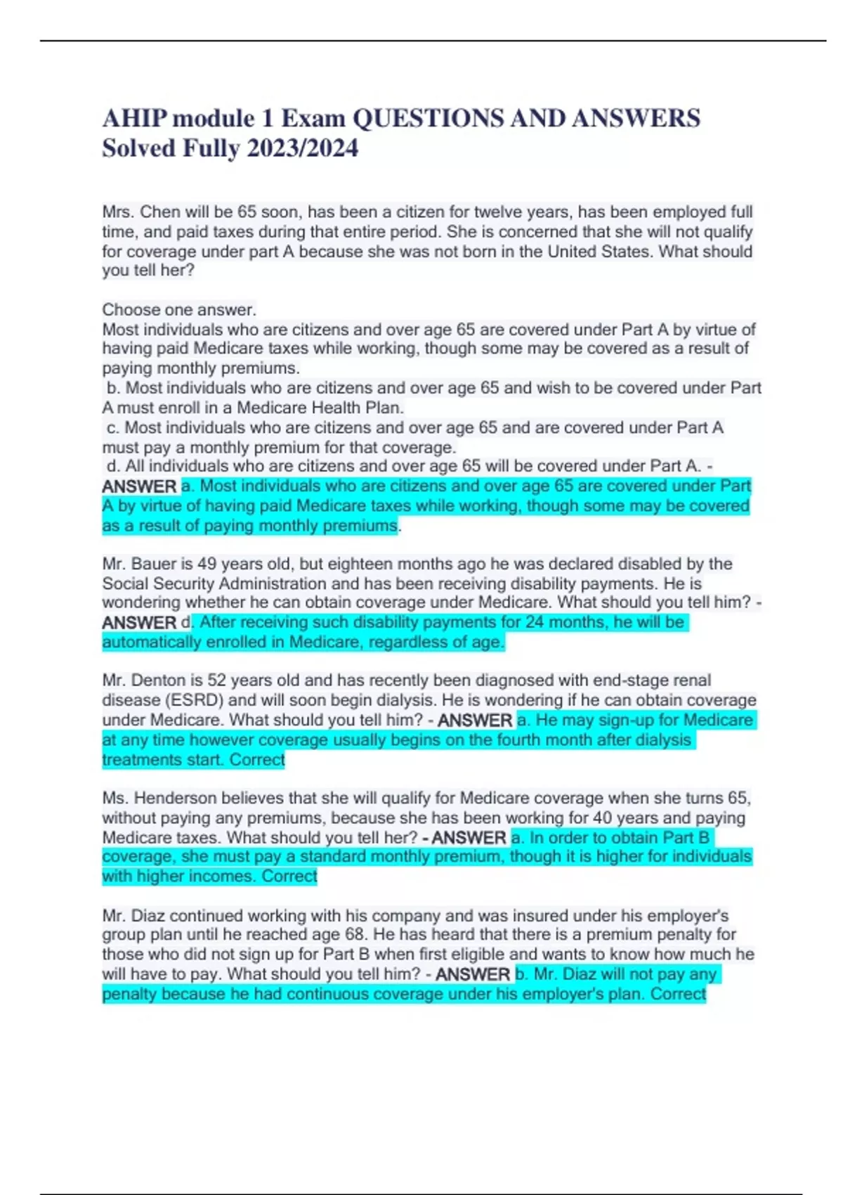 AHIP module 1 Exam QUESTIONS AND ANSWERS Solved Fully 2023/2024
