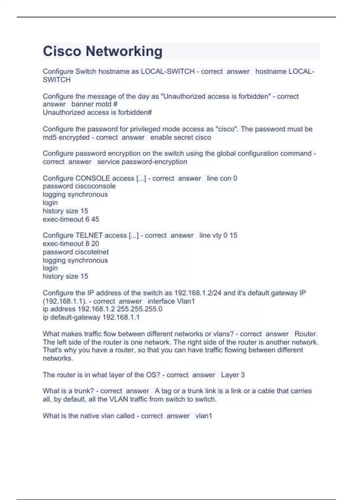 cisco networking question and answers already pass