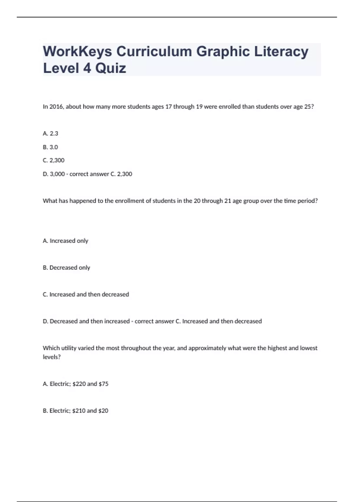 WorkKeys Curriculum Graphic Literacy Level 4 Quiz with answers 2023