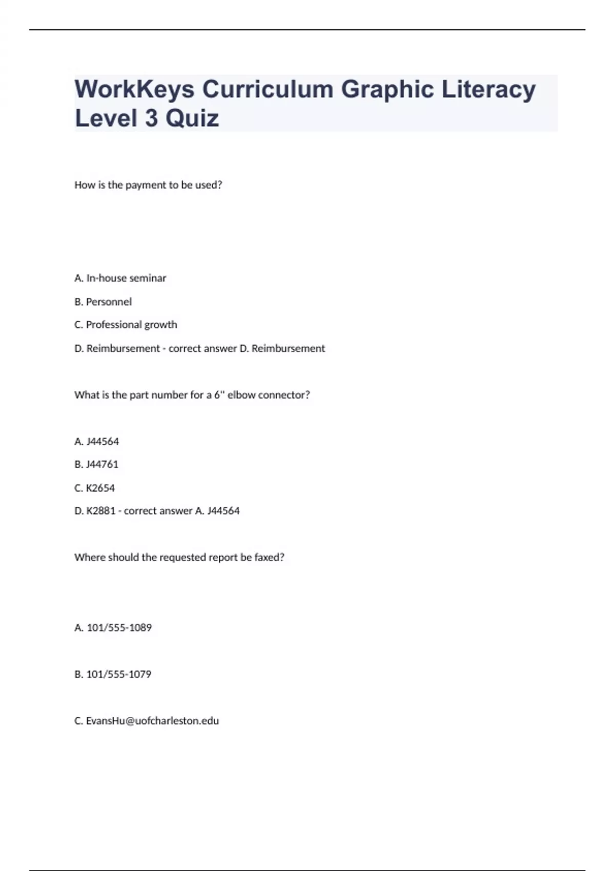 WorkKeys Curriculum Graphic Literacy Level 3 Quiz fully solved graded A+