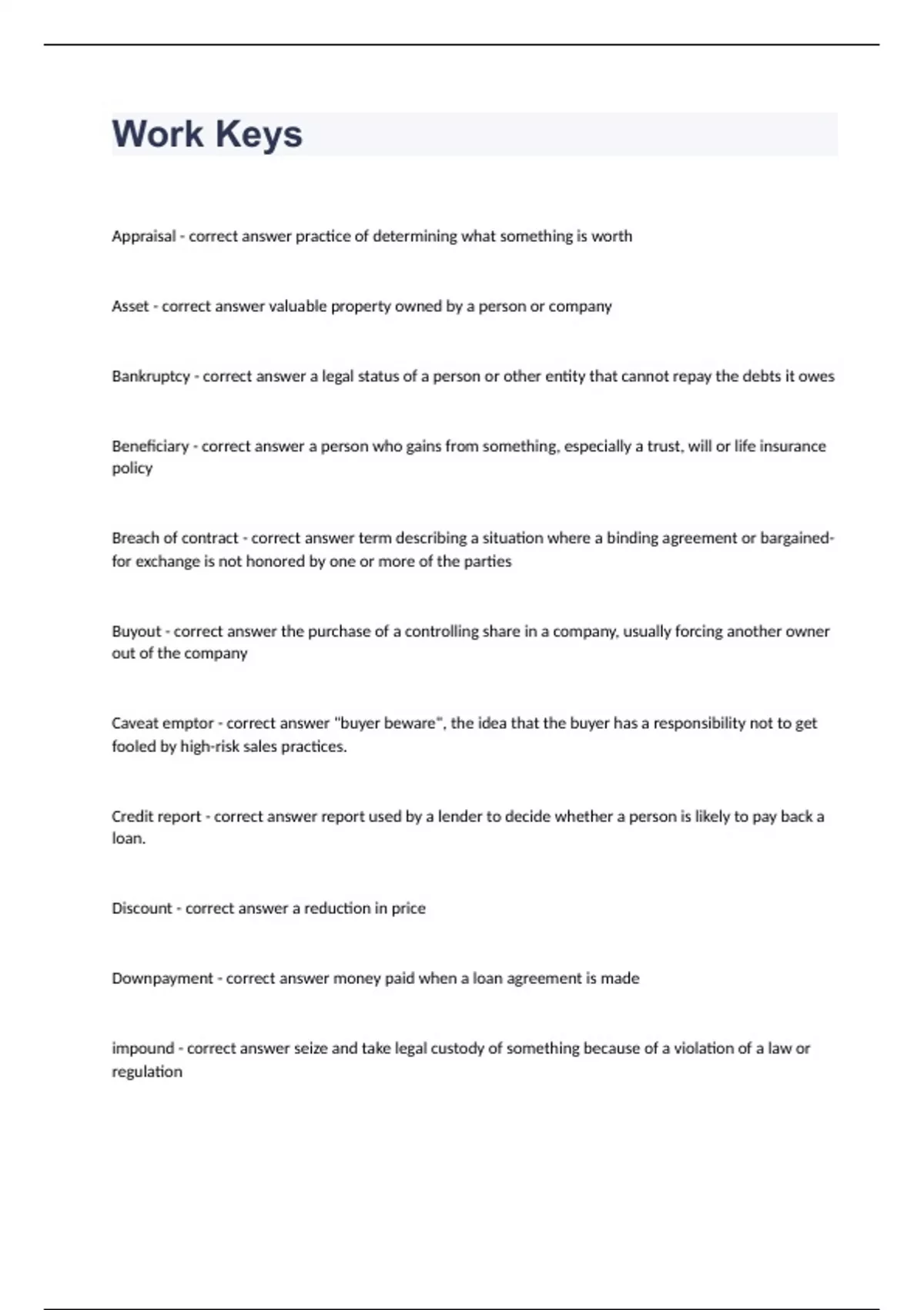 Exam of 2 pages for the course WorkKeys at WorkKeys (Work Keys.)
