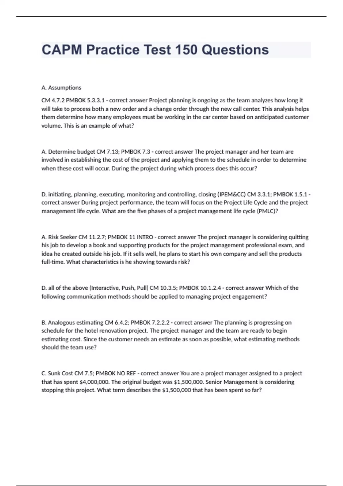CAPM Practice Test 150 Questions and answers graded A+ 2023