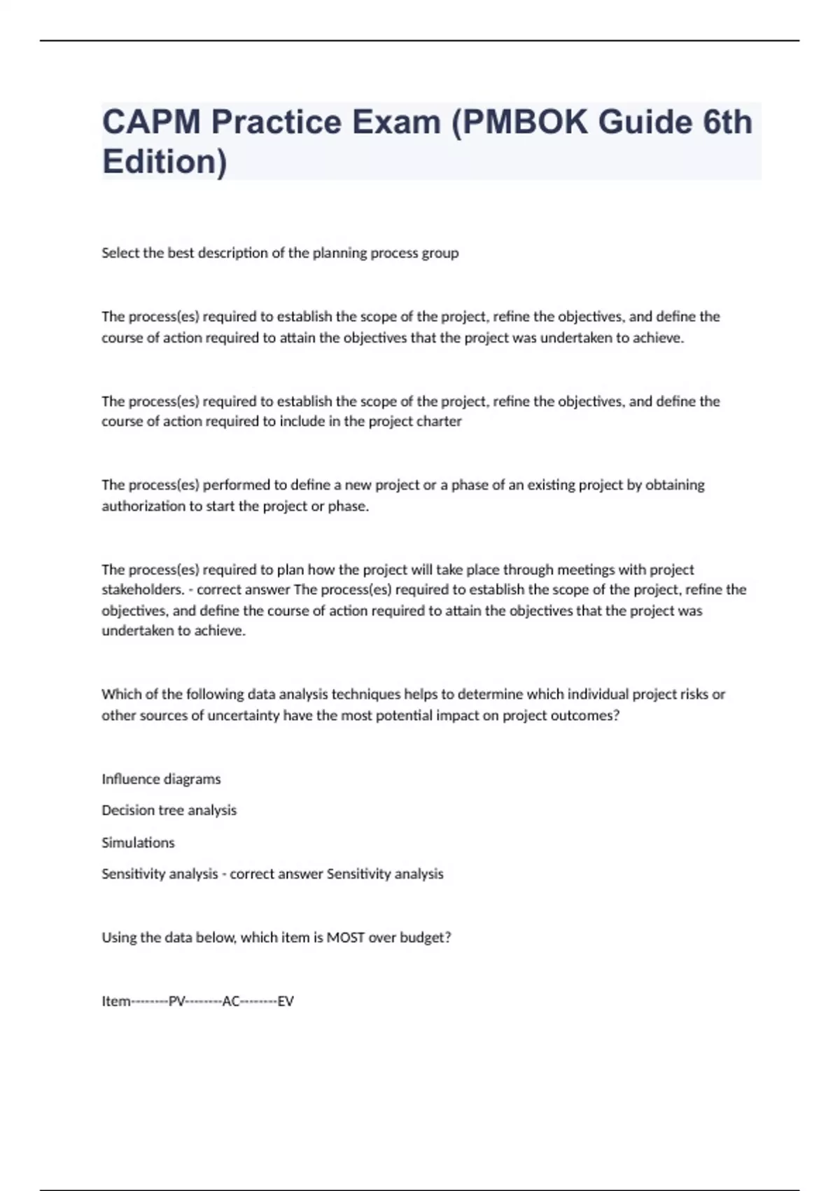 CAPM Practice Exam (PMBOK Guide 6th Edition).