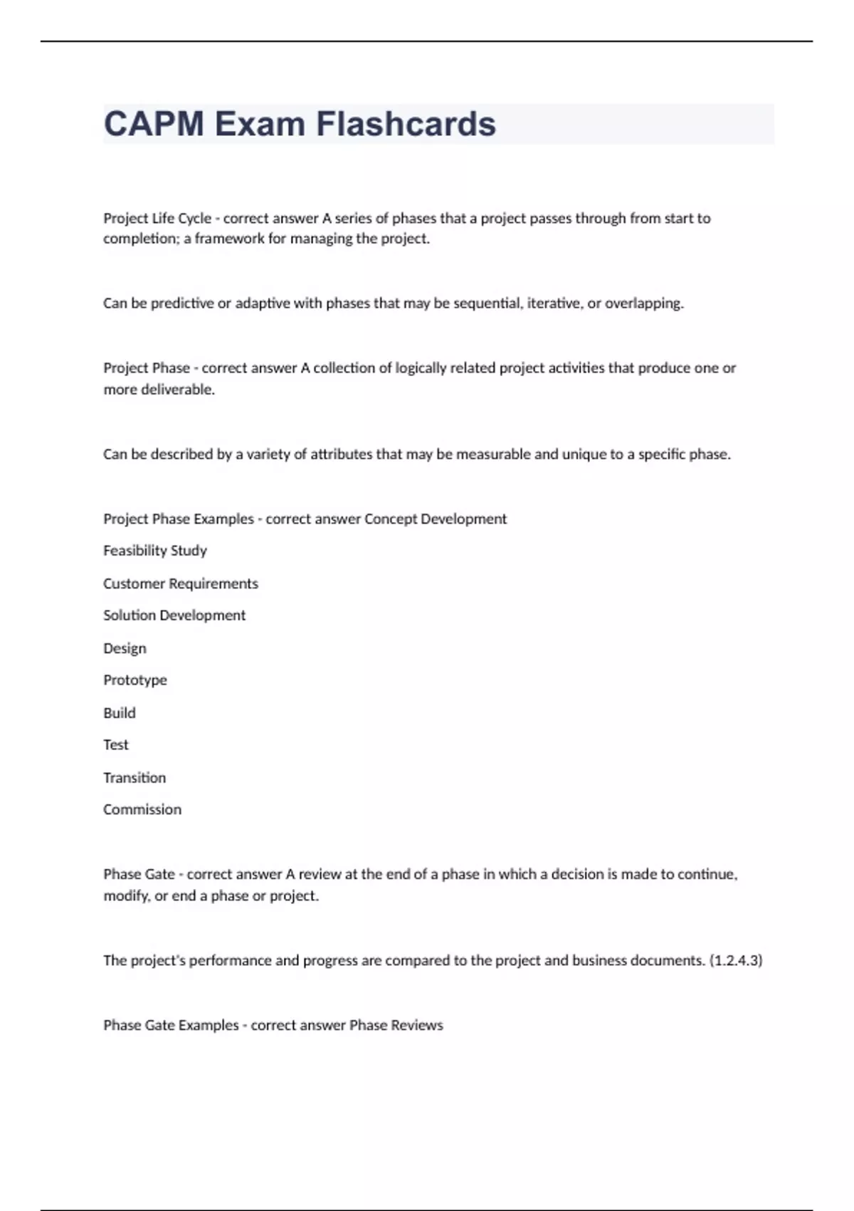Exam of 56 pages for the course CAPM at CAPM (CAPM Exam Flashcard)