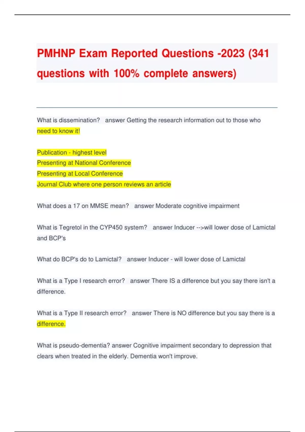 TEST BANK PMHNP Exam Reported Questions -2023 (341 questions with 100% complete answers)