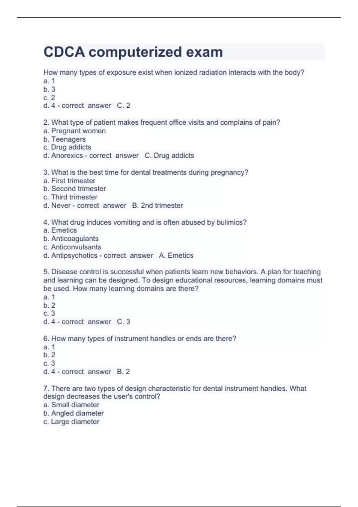 cdca computerized exam question and answers correc