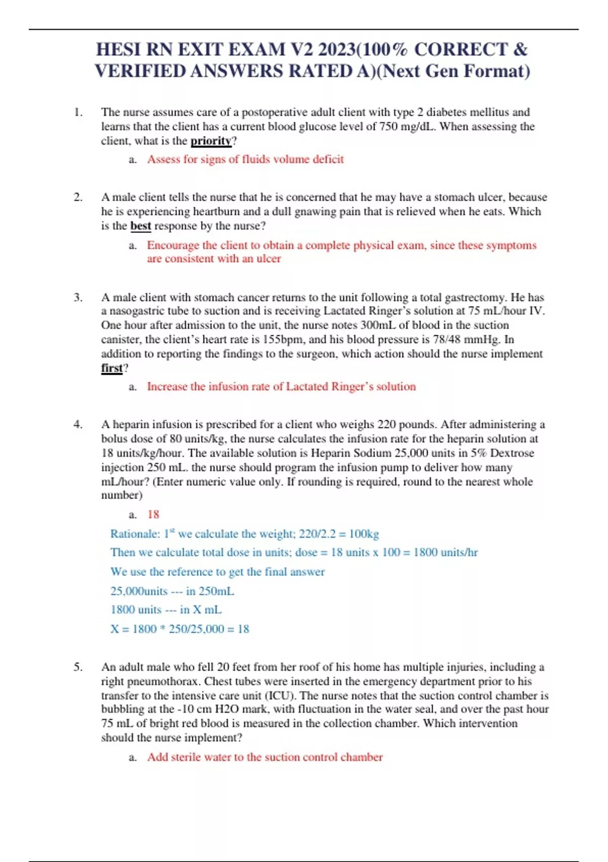 HESI RN EXIT EXAM V2 2023(100% CORRECT & VERIFIED ANSWERS RATED A)(Next Gen Format)