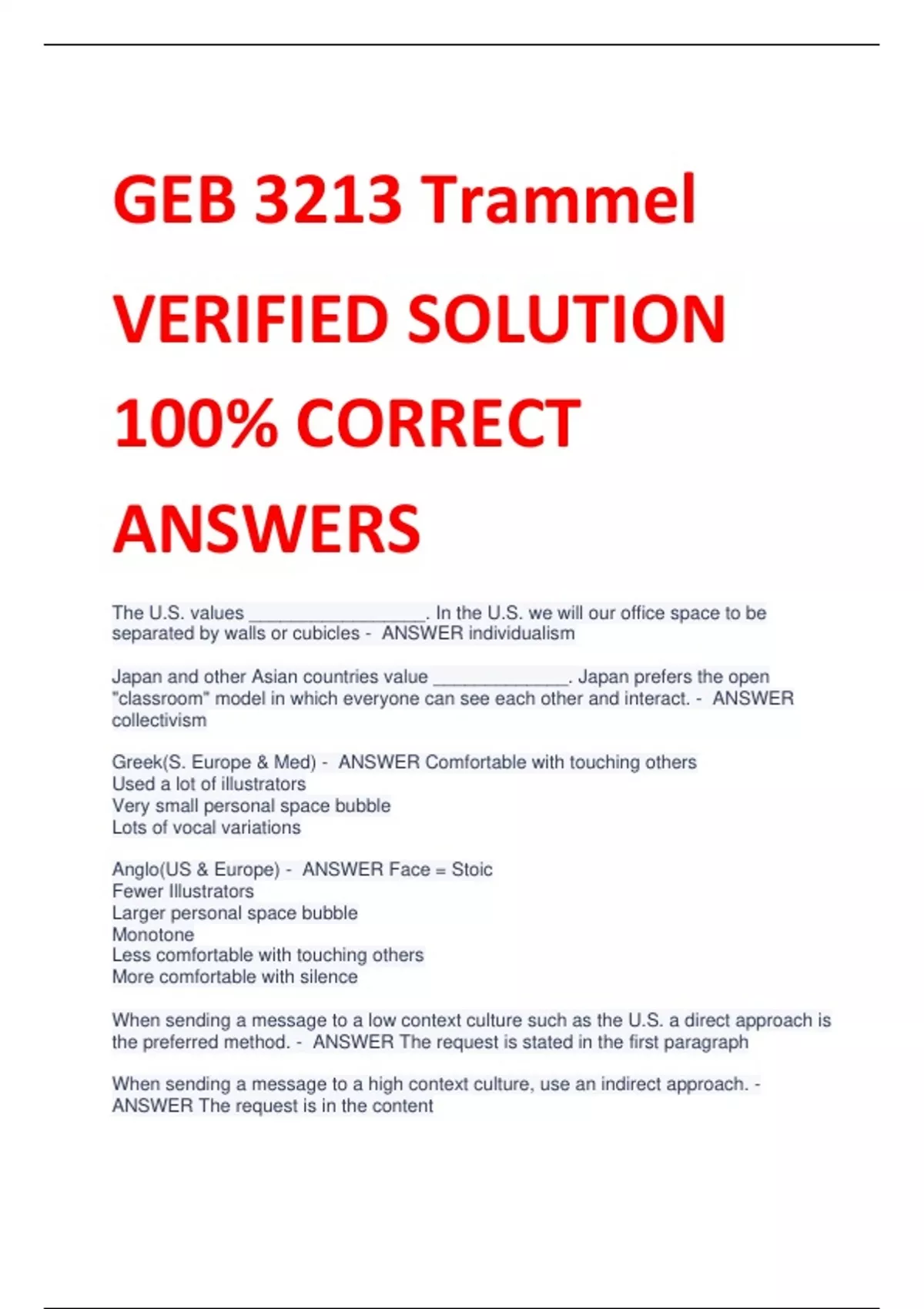 GEB 3213 Trammel VERIFIED SOLUTION 100% CORRECT ANSWERS