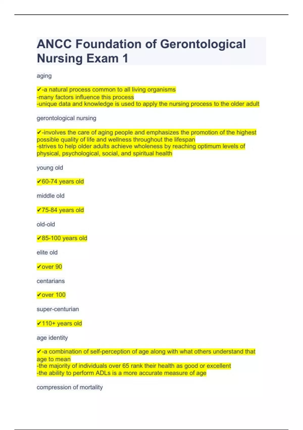 ANCC Foundation of Gerontological Nursing Exam 1.