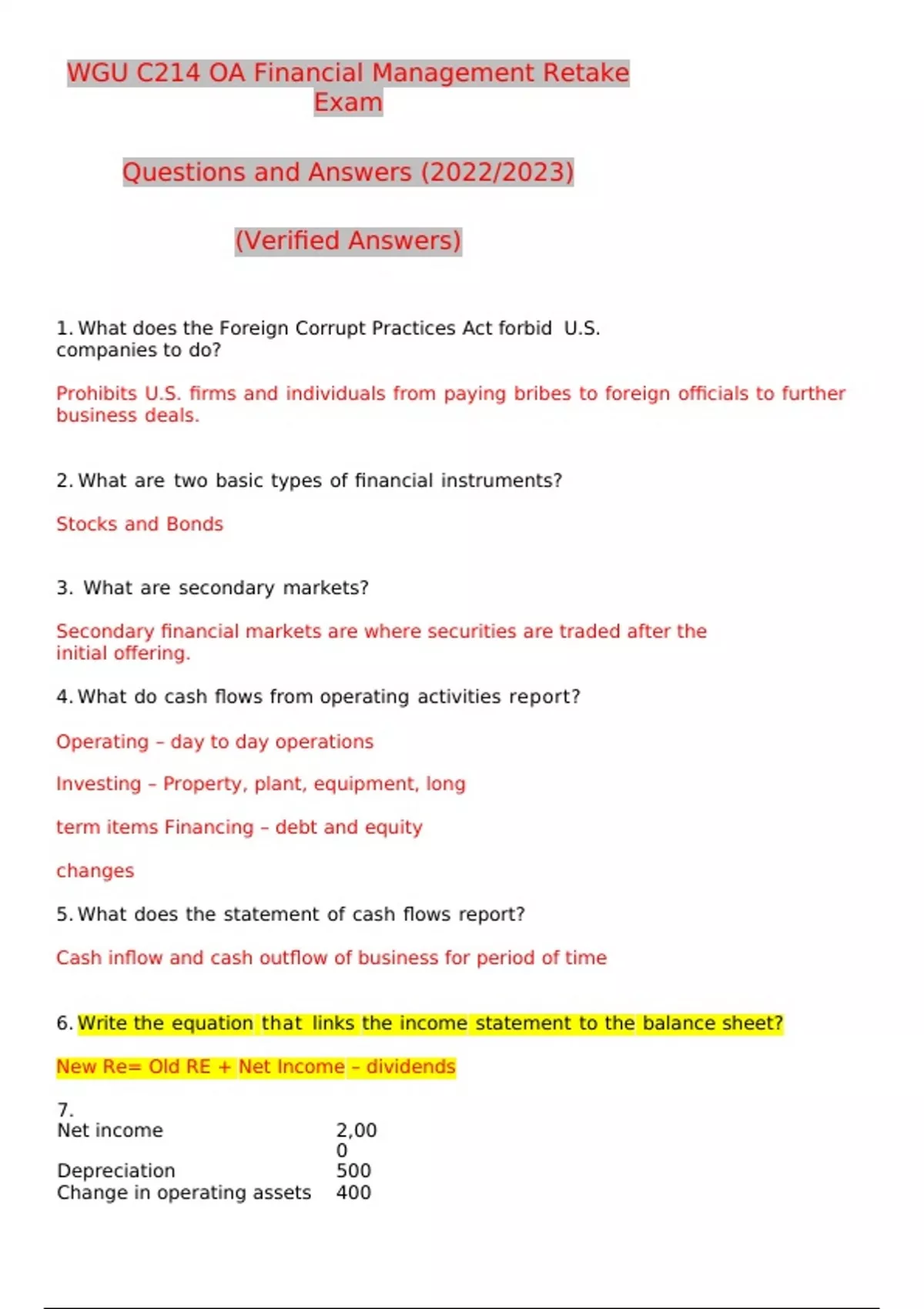 WGU C214 Financial Management Study Bundle Package Deal With Questions and Answers (2022/2023) (Verified Bundle)