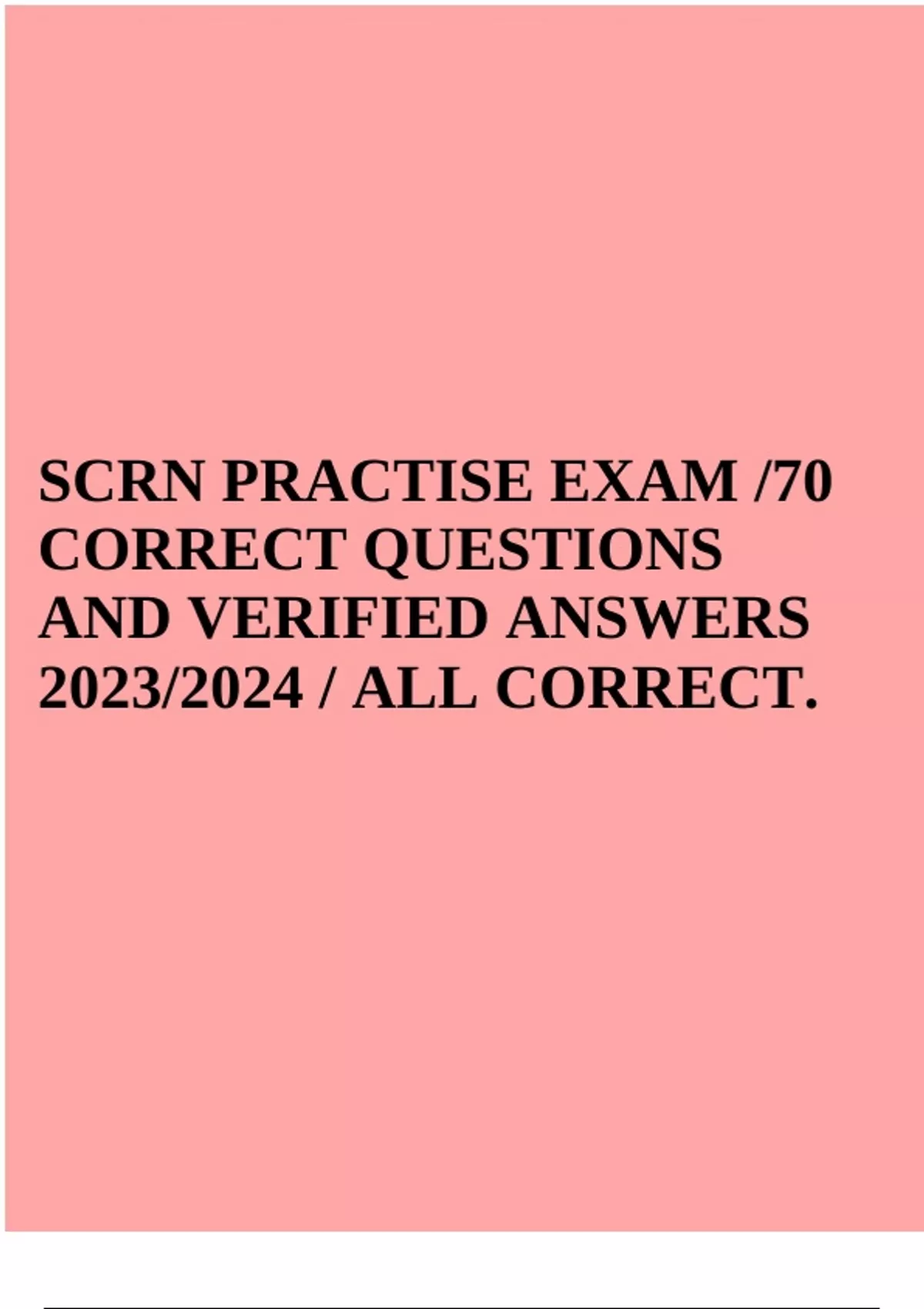 SCRN PRACTISE EXAM /70 CORRECT QUESTIONS AND VERIFIED ANSWERS 2023/2024 / ALL CORRECT.