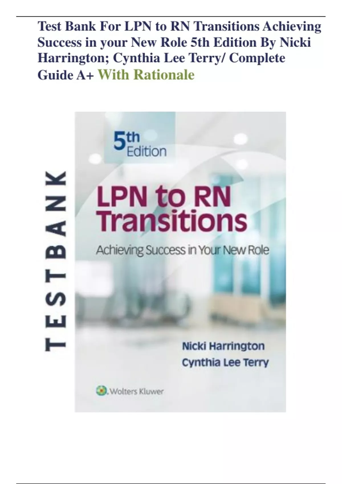 Test Bank For LPN to RN Transitions Achieving Success in your New Role 5th Edition By Nicki Harrington; Cynthia Lee Terry/ Complete Guide A+ With Rationale