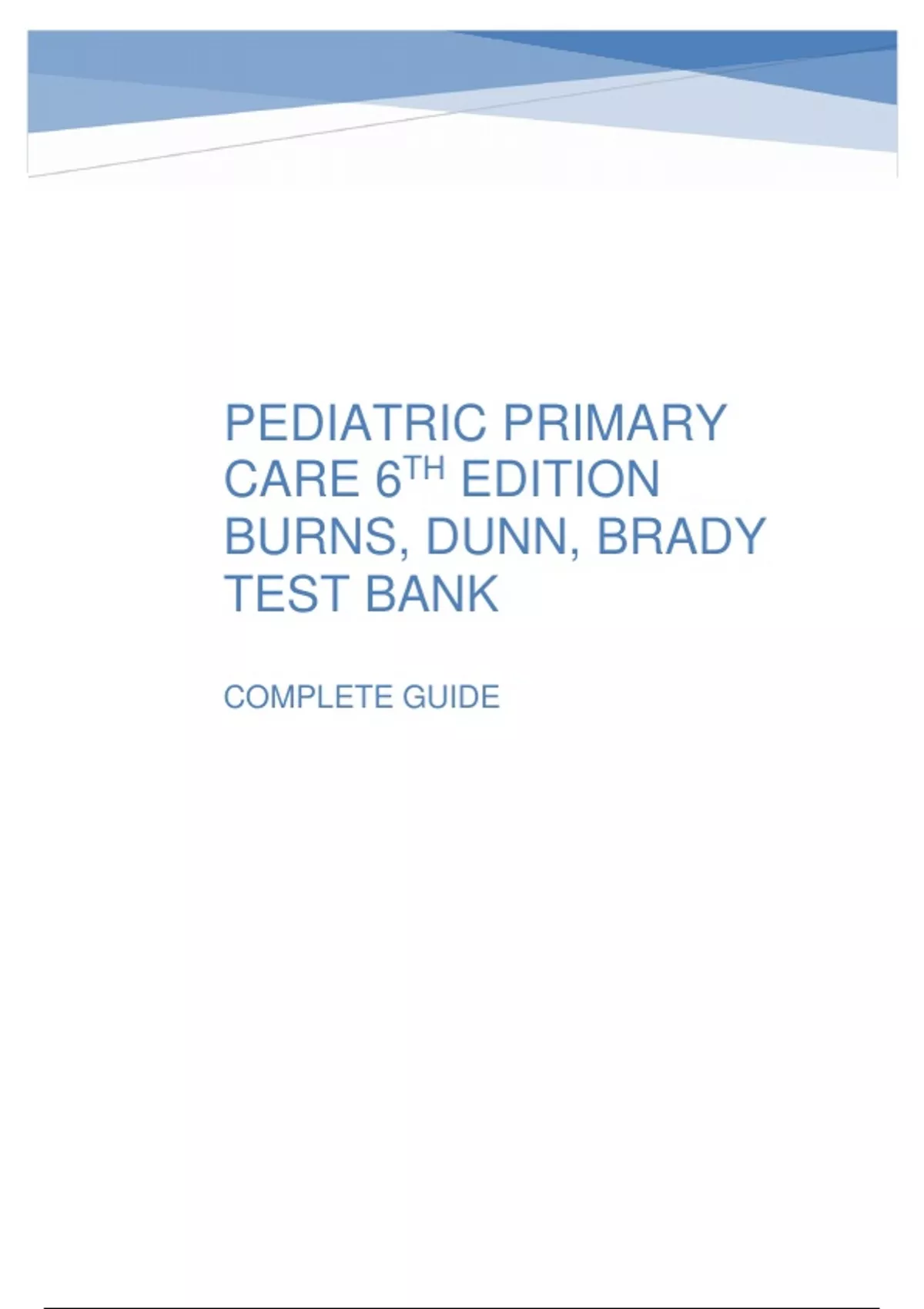 PEDIATRIC PRIMARY CARE 6TH EDITION BURNS, DUNN, BRADY TEST BANK COMPLETE GUIDE