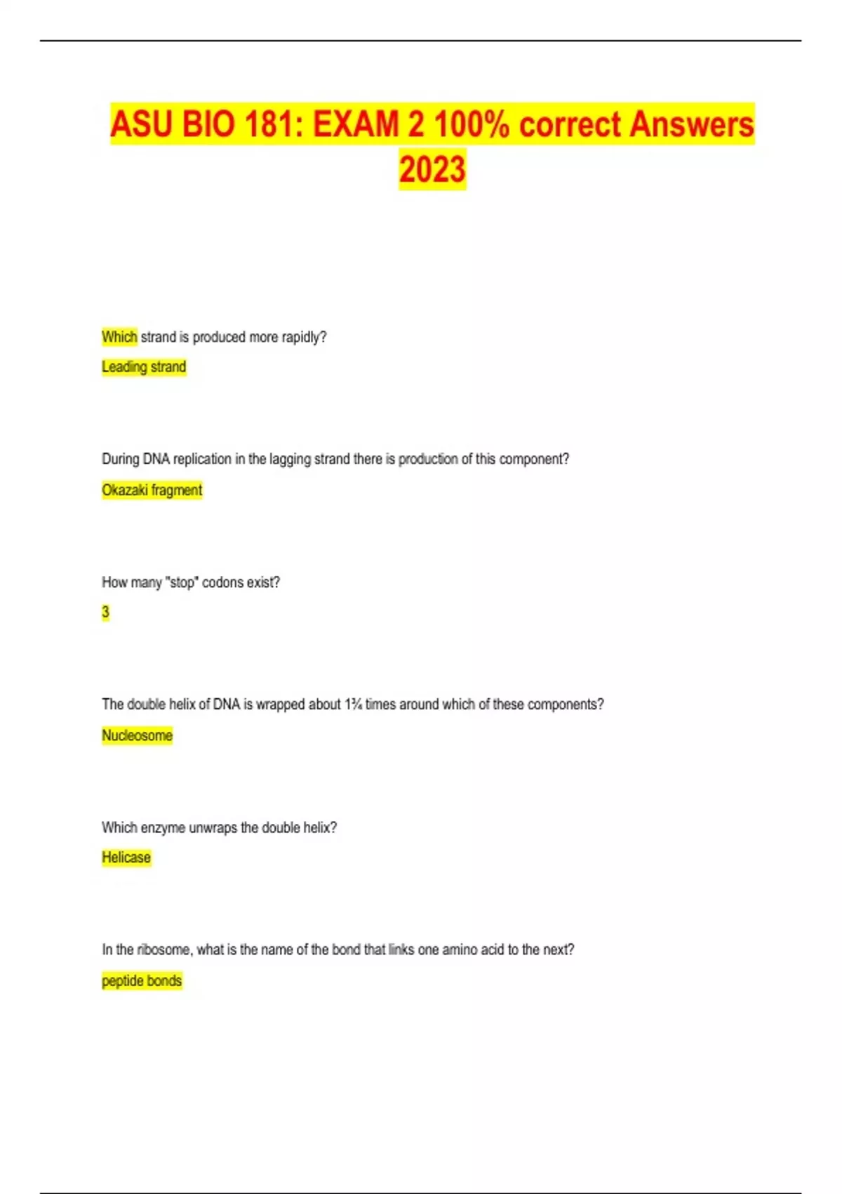ASU BIO 181: EXAM 2 100% correct Answers 2023