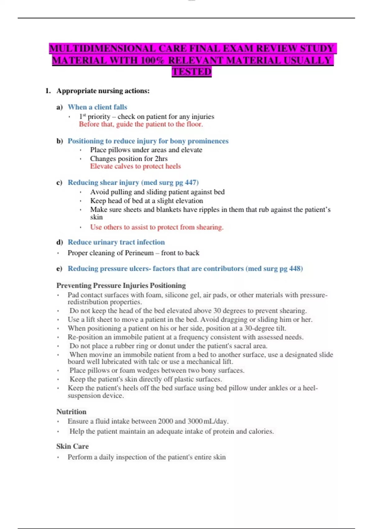 MULTIDIMENSIONAL CARE FINAL EXAM REVIEW STUDY MATERIAL WITH 100% RELEVANT MATERIAL USUALLY TESTED