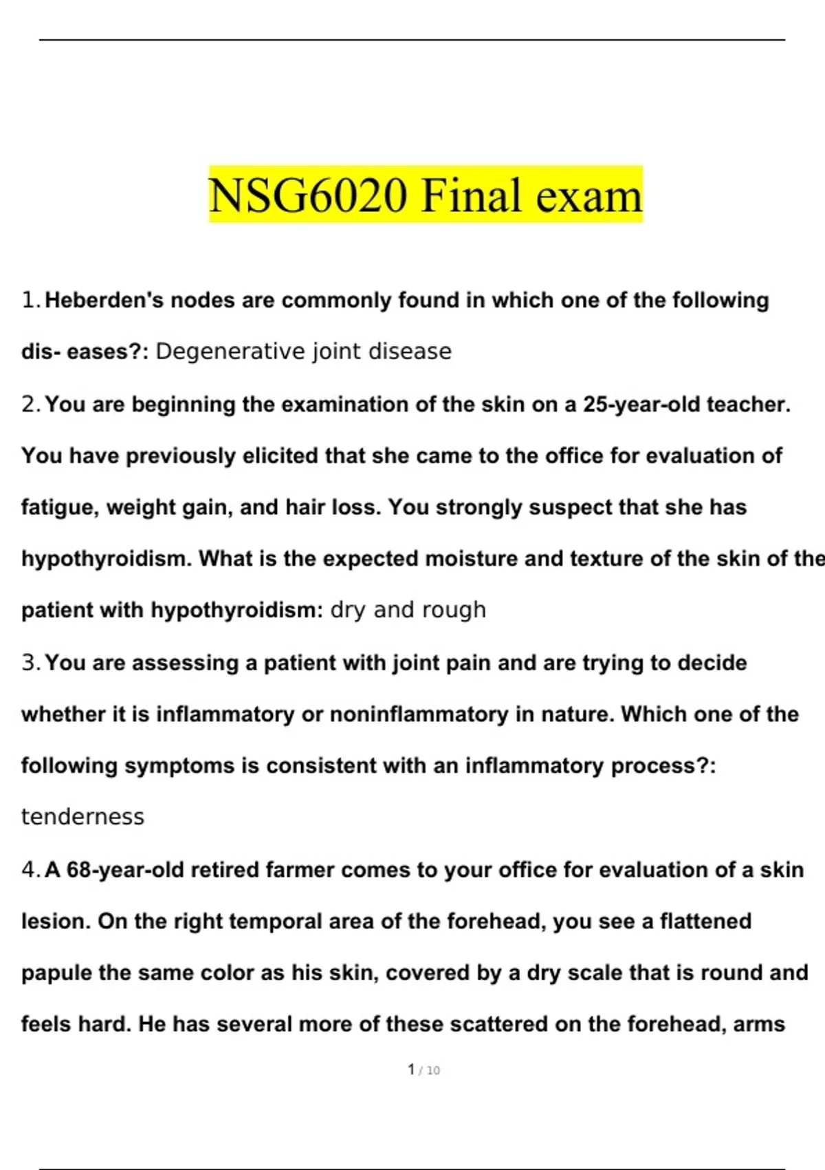 NSG6020 Bundled Exams Questions and Answers with Complete and Verified Solutions