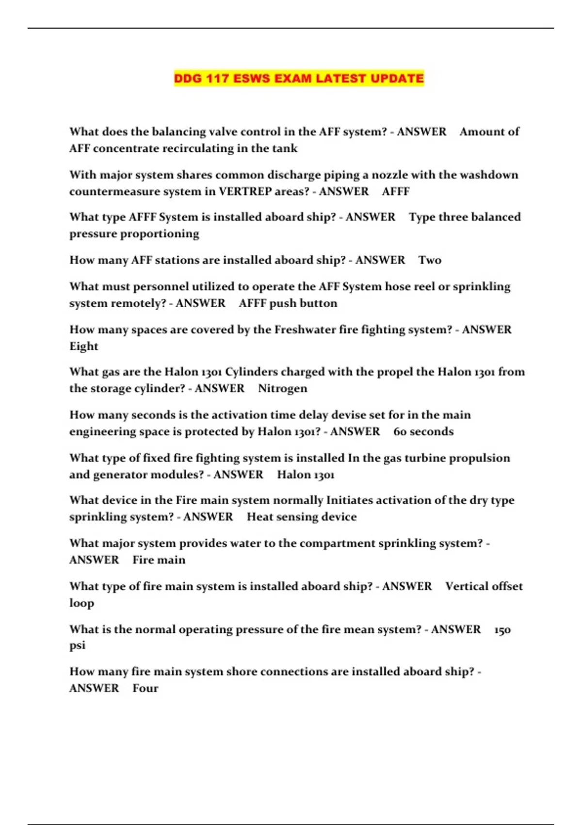 DDG 117 ESWS EXAM LATEST UPDATE...