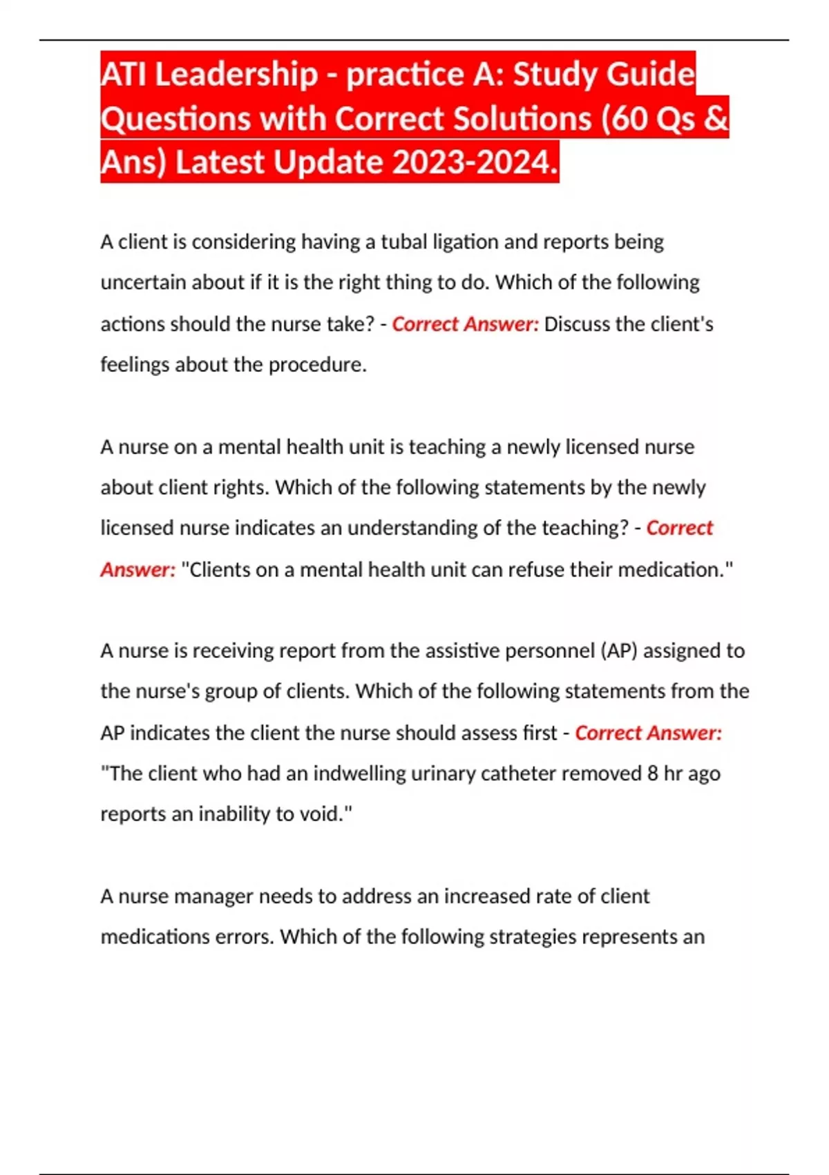 actions should the nurse take? - Correct Answer: Discuss the client's