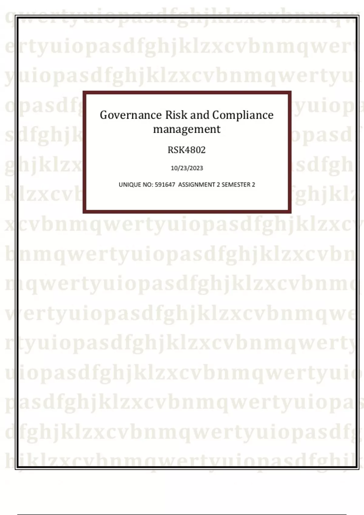 UNIQUE NO: 591647 ASSIGNMENT 2 SEMESTER 2