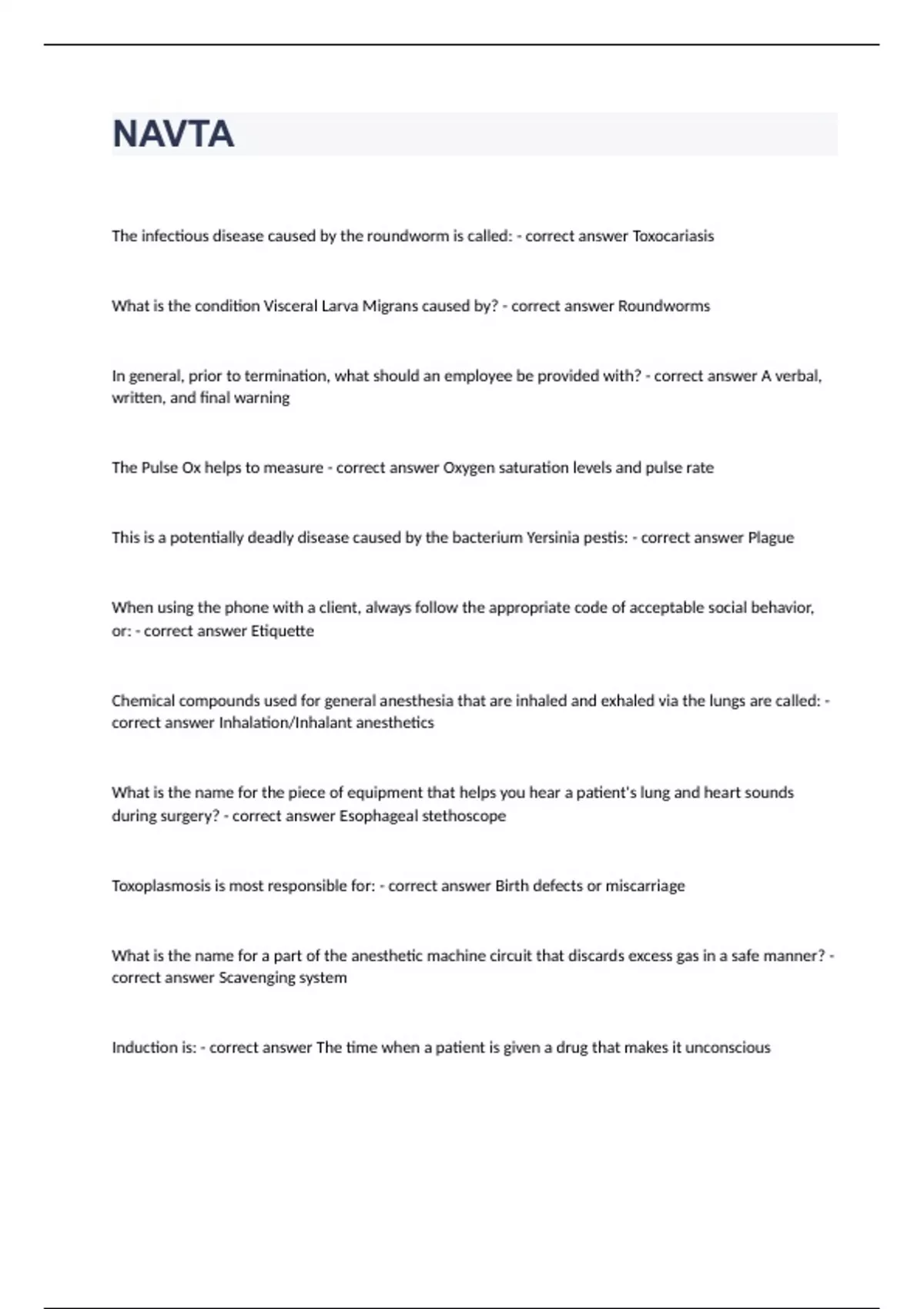 NAVTA question with 100% correct answers 2023