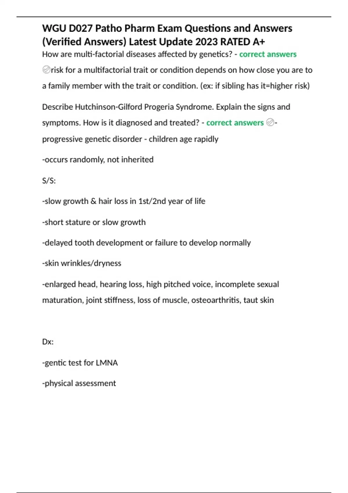 Summary WGU D027 Patho Pharm Exam Questions and Answers (Verified Answers) Latest Update 2023 RATED A+