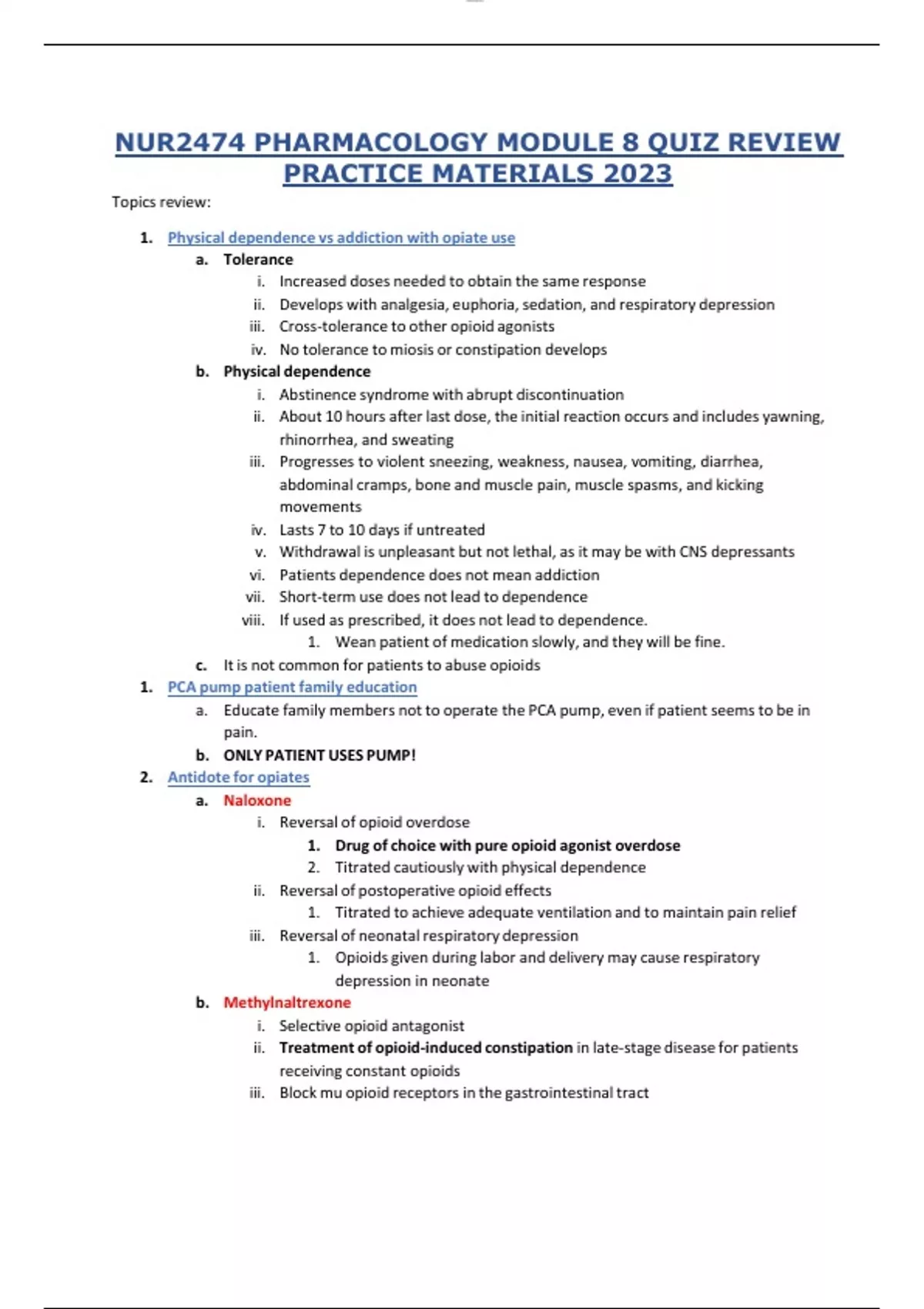 NUR2474 PHARMACOLOGY MODULE 8 QUIZ REVIEW PRACTICE MATERIALS 2023