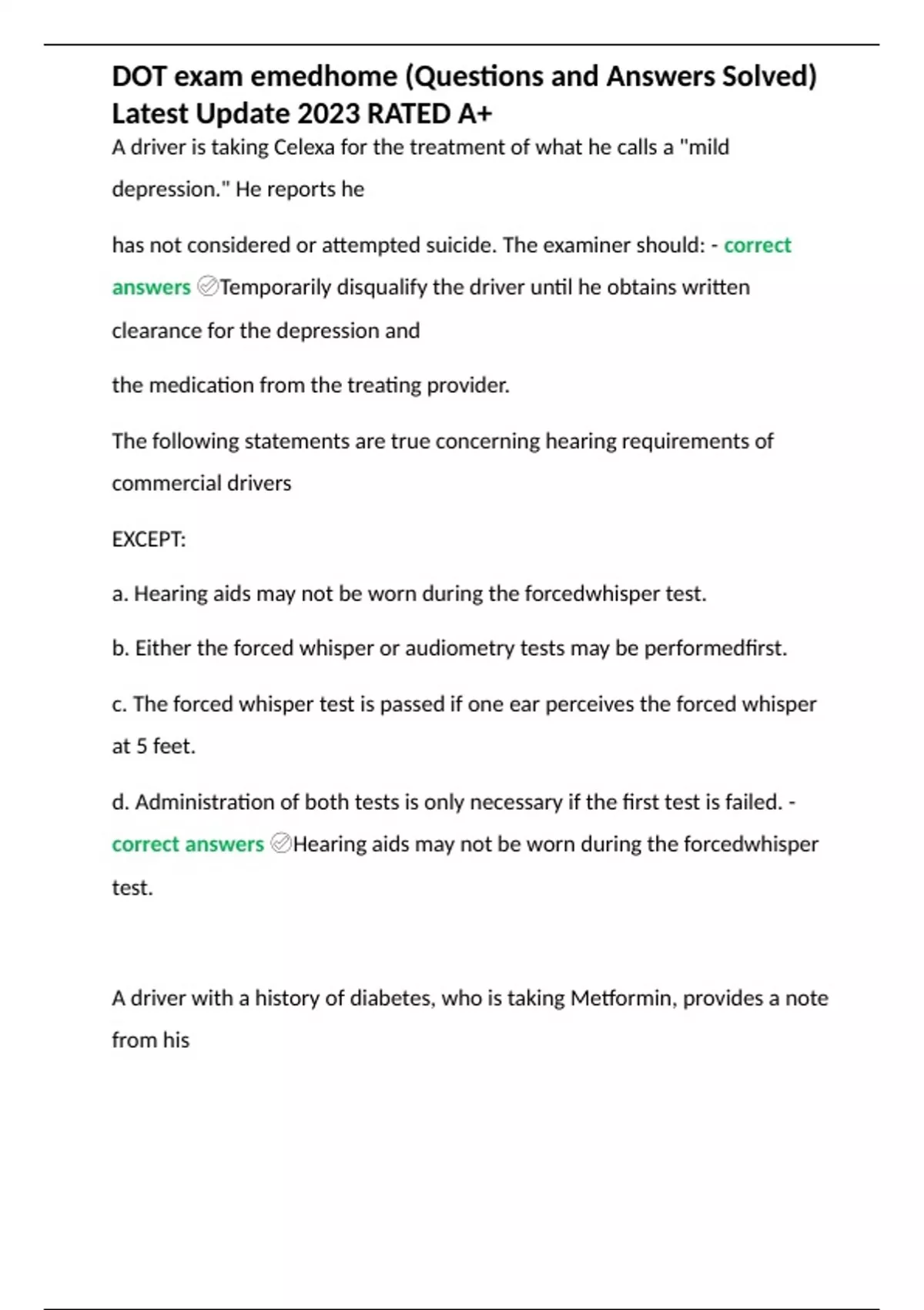 DOT exam emedhome (Questions and Answers Solved) Latest Update 2023 RATED A+