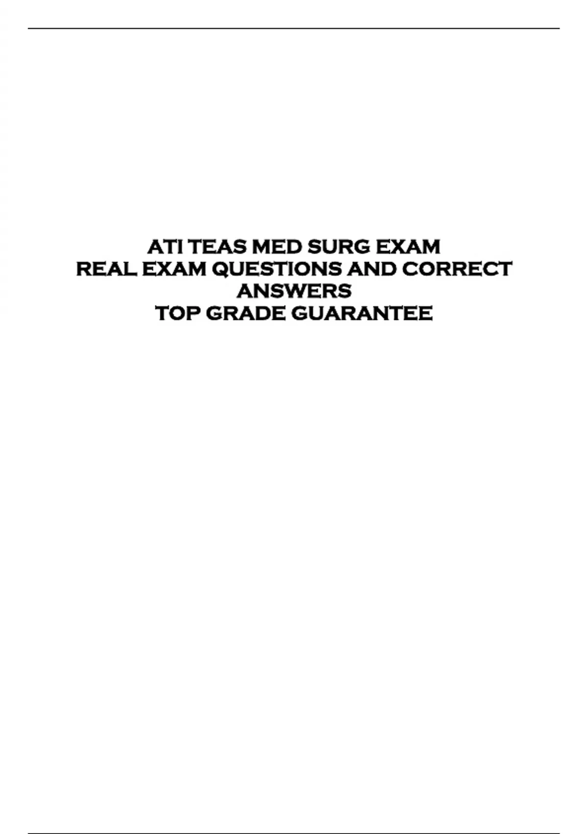 ATI TEAS MED SURG EXAM REAL EXAM QUESTIONS AND CORRECT ANSWERS TOP GRADE GUARANTEE