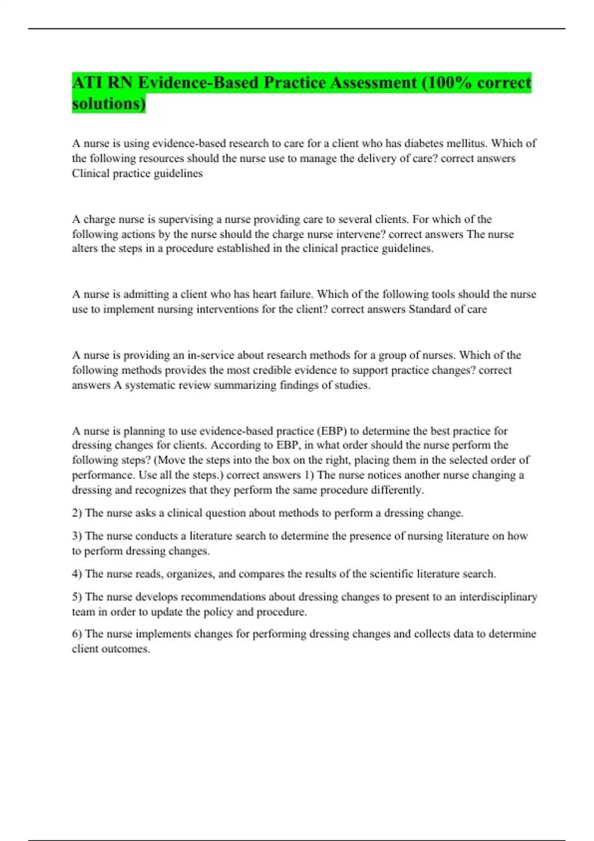 ATI RN Evidence-Based Practice Assessment (100% correct solutions)