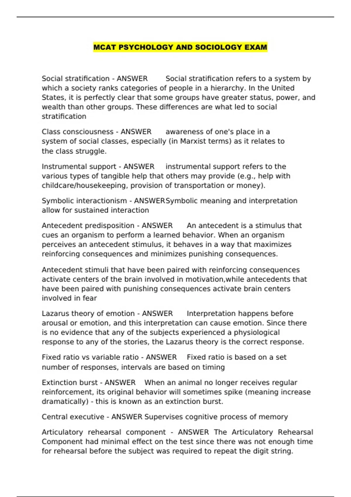 MCAT PSYCHOLOGY AND SOCIOLOGY EXAM 2023/24 LATEST UPDATE