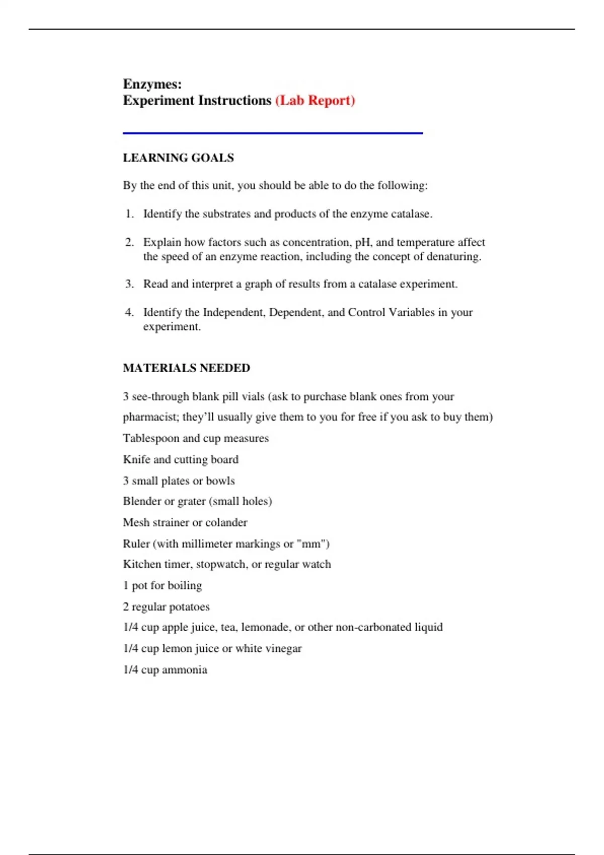enzymes experiment LAB REPORT