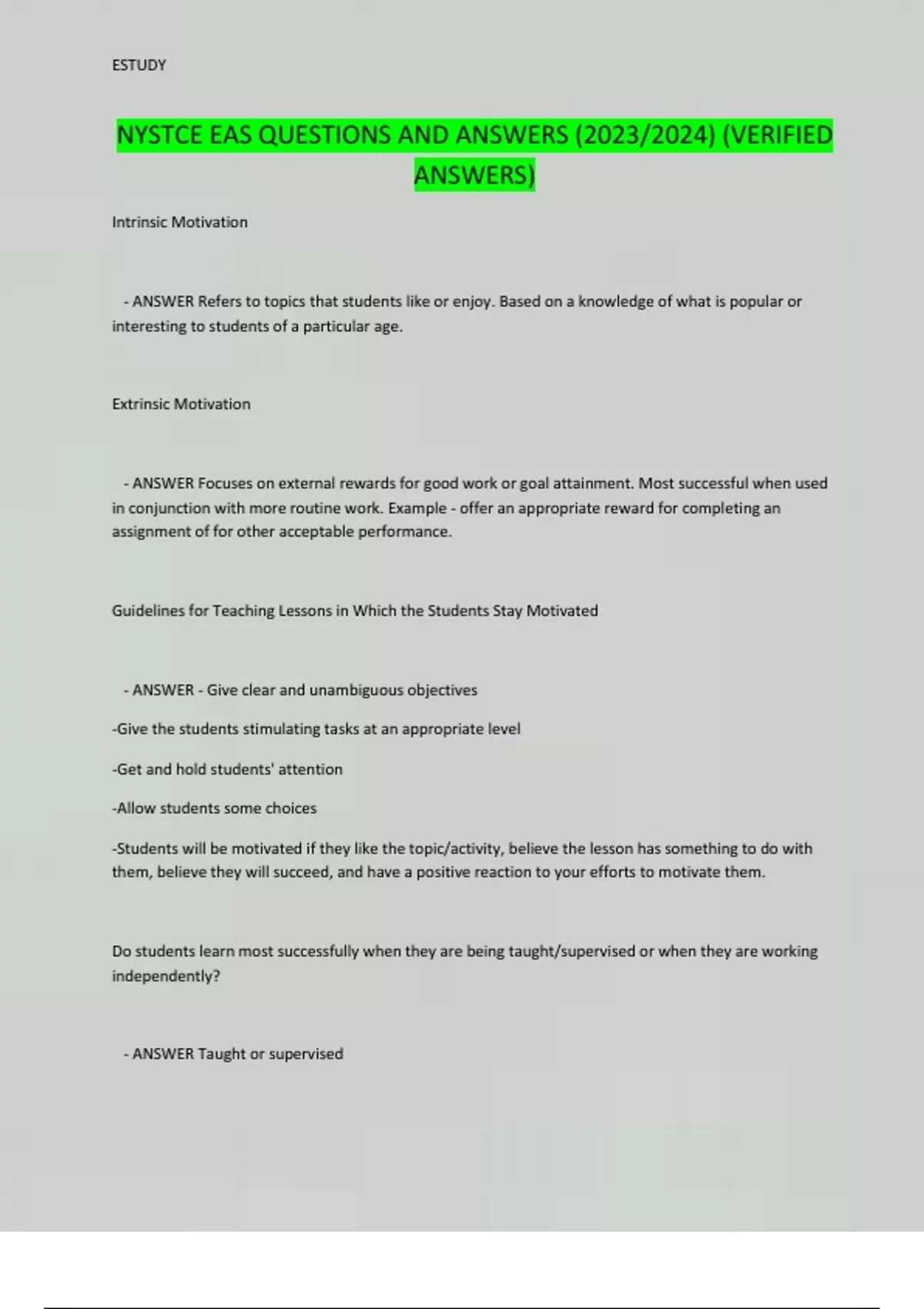 NYSTCE EAS QUESTIONS AND ANSWERS (2023/2024) (VERIFIED ANSWERS)