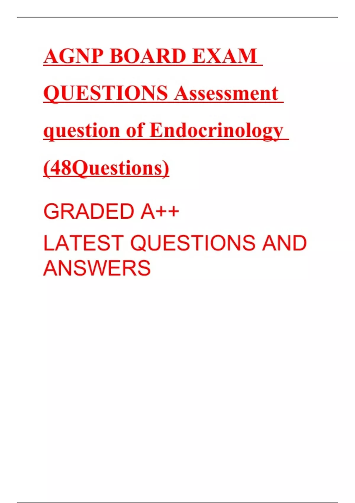 AGNP BOARD EXAM QUESTIONS Assessment question of Endocrinology (48Questions) GRADED A++ LATEST QUESTIONS AND ANSWERS