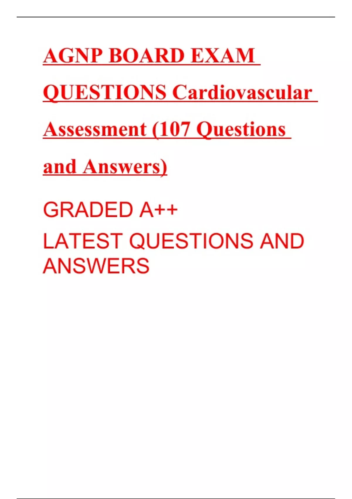 AGNP BOARD EXAM QUESTIONS Cardiovascular Assessment (107 Questions and Answers) GRADED A+ LATEST QUESTIONS AND ANSWERS