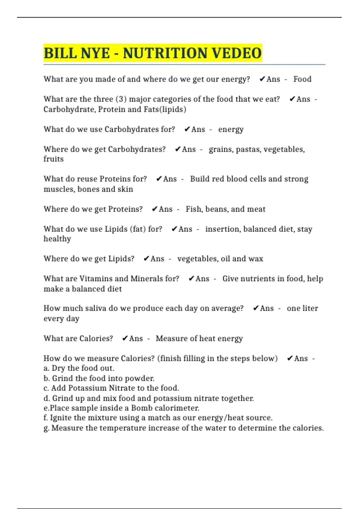 BILL NYE - NUTRITION VEDEO