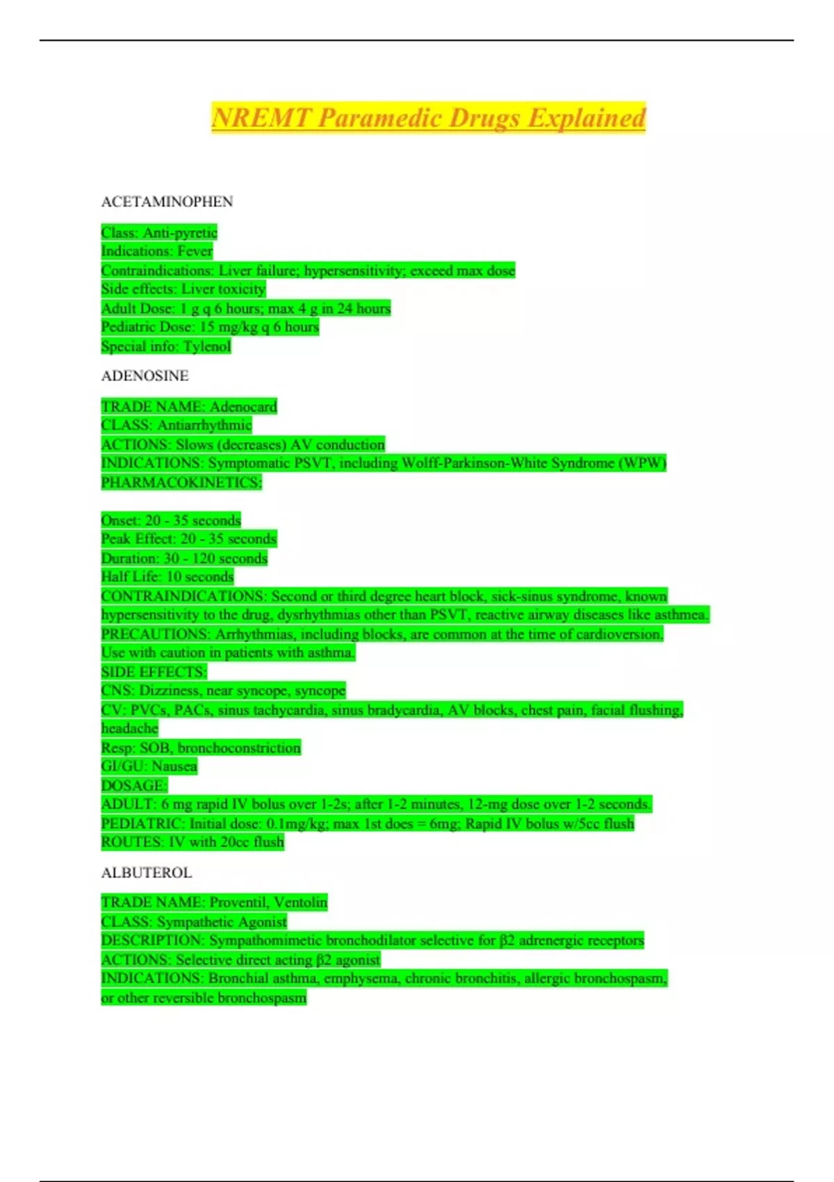 NREMT Paramedic Drugs Explained for Exam Preparations NREMT Paramedic Drugs Explained for Exam Preparations