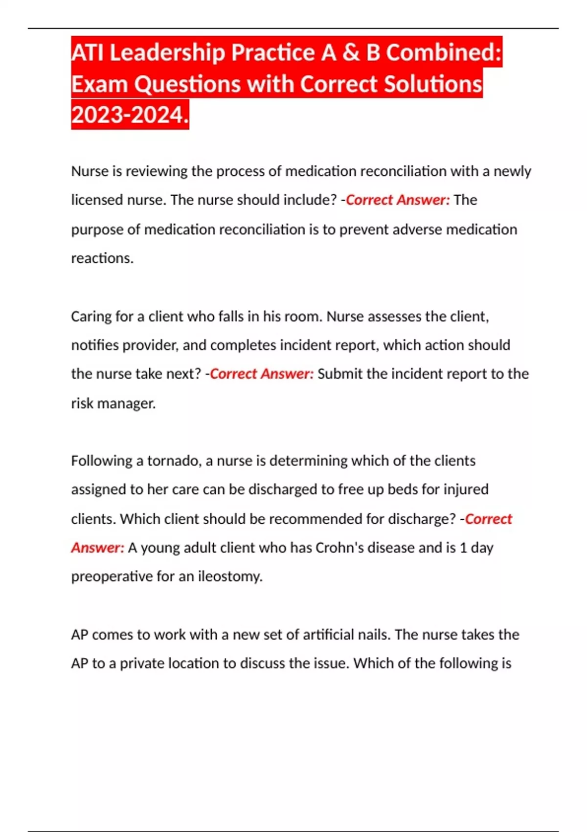 the nurse take next? -Correct Answer: Submit the incident report to the