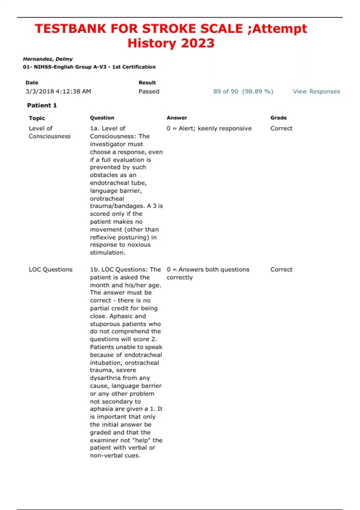TESTBANK FOR STROKE SCALE ;Attempt History 2023