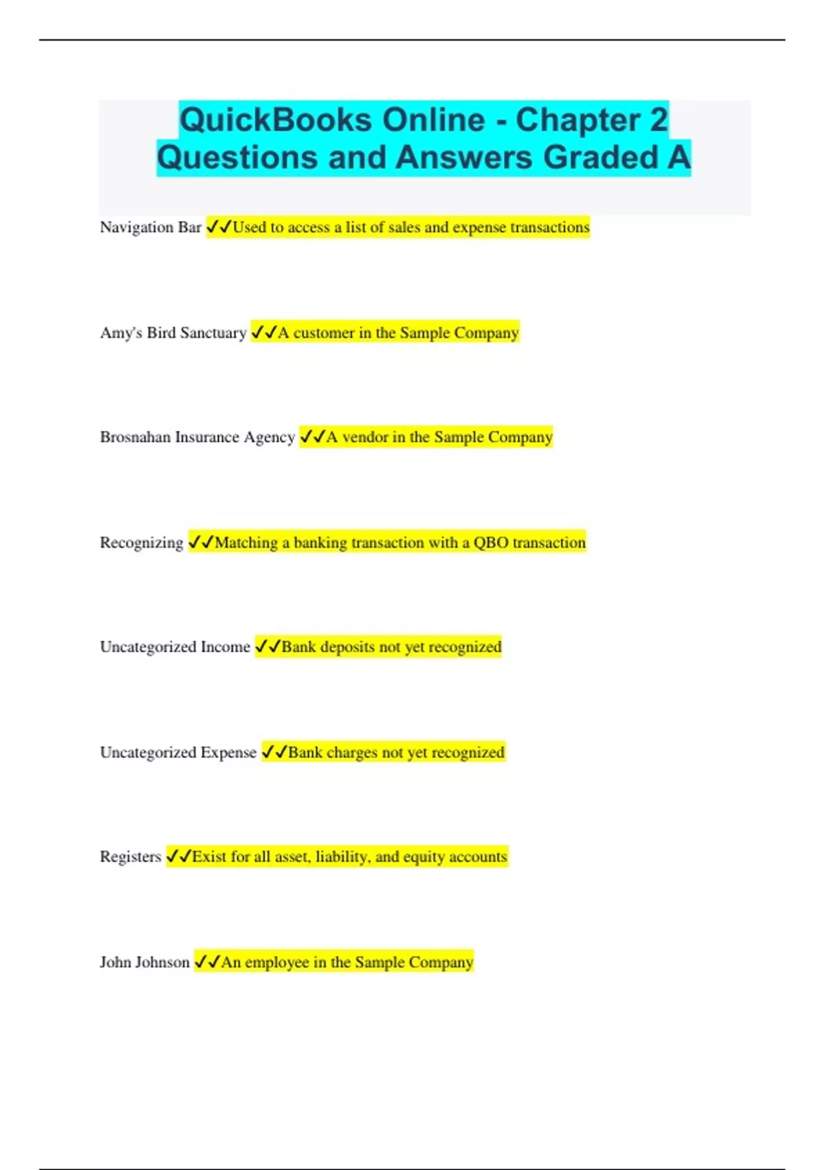 QuickBooks Online - Chapter 2 Questions and Answers Graded A