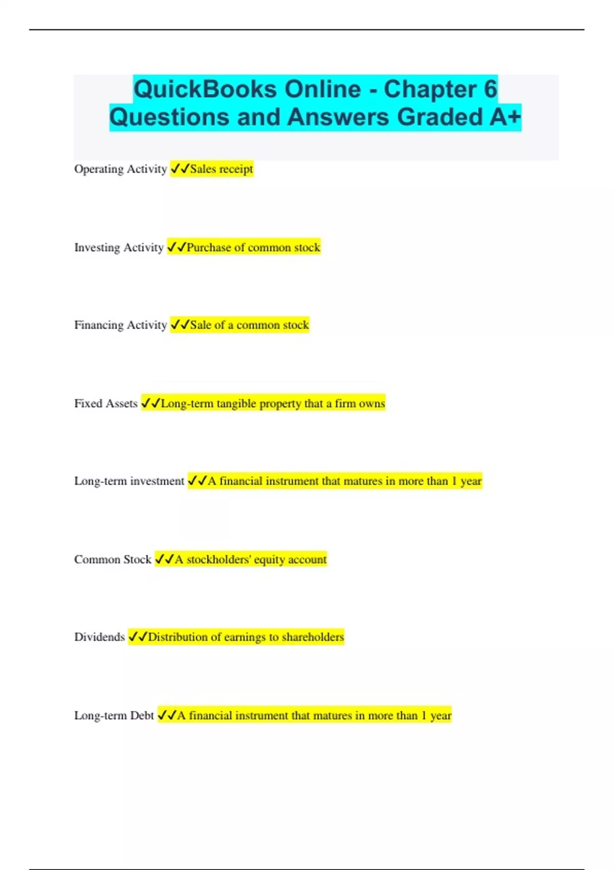 QuickBooks Online - Chapter 6 Questions and Answers Graded A+