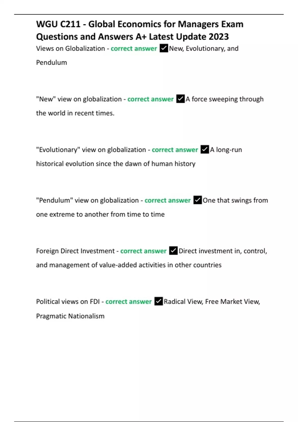 WGU C211 - Global Economics for Managers Exam Questions and Answers A+ Latest Update 2023